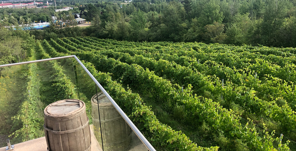 D'entrée de jeu, le site du vignoble est magnifique. La maison principale est un bed & breakfast et le nouveau site du vignoble à l'arrière (qui était en construction quand nous sommes passés) est incroyable. La vue de ses balcons sur la ville de Moncton est surprenante. L'entrée invitante se trouve à l'arrière. Immédiatement, une amie du couple propriétaire vient nous rencontrer. Elle se lance dans l'histoire du site avec un présentoir qu'elle sort de sous le comptoir, en pointant d'une photo à l'autre.