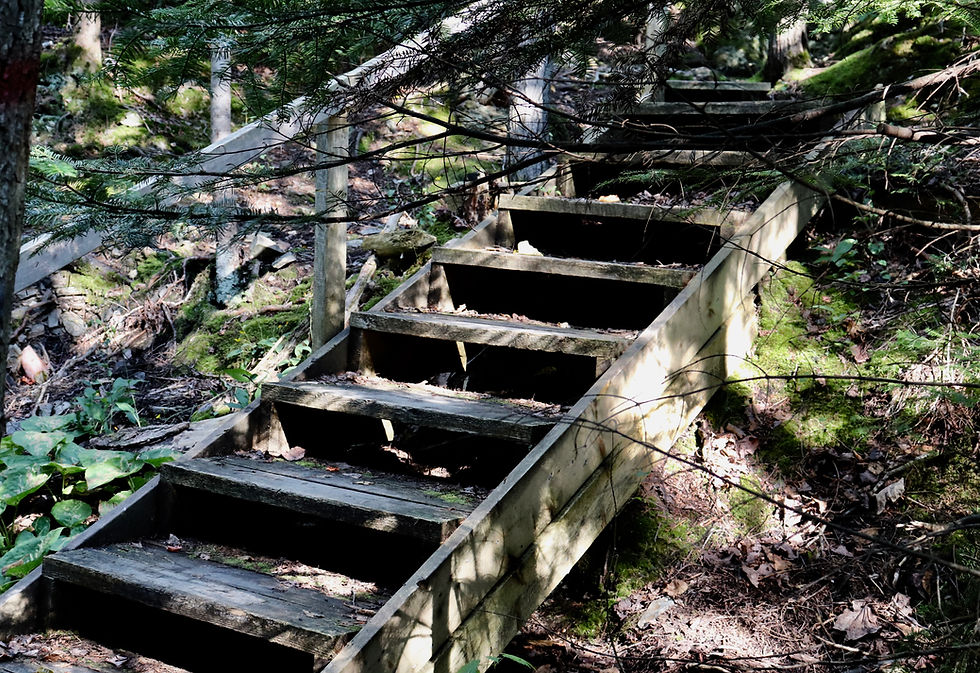 Nous avons décidé de prendre le sentier #1 qui fait le tour du parc. En fin d'après-midi, le soleil offre des jeux d'ombres intéressants. L'air est pur et plaisant. Malgré que nous sommes tout près du centre-ville, on n'entend que le vent dans les feuilles et quelques écureuils jacasser à notre approche.