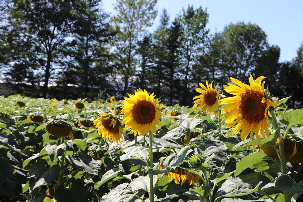 Sur le retour vers la 20, on s'est arrêté devant un champ de tournesols qui étaient en fleurs. On offrait un cadre touristique pour prendre un cliché devant le beau paysage. Une belle publicité!