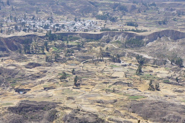 On remonte dans la voiture pour se rendre à Cabanaconde où débute notre randonnée dans le canyon Colca. Il s'agit du plus haut canyon du monde (plus haut que le Grand Canyon). Il est cependant dans sa phase juvénile et ses parois sont très rapprochées. Il est donc visuellement beaucoup moins impressionnant que le Grand Canyon, mais il est beaucoup plus haut.
